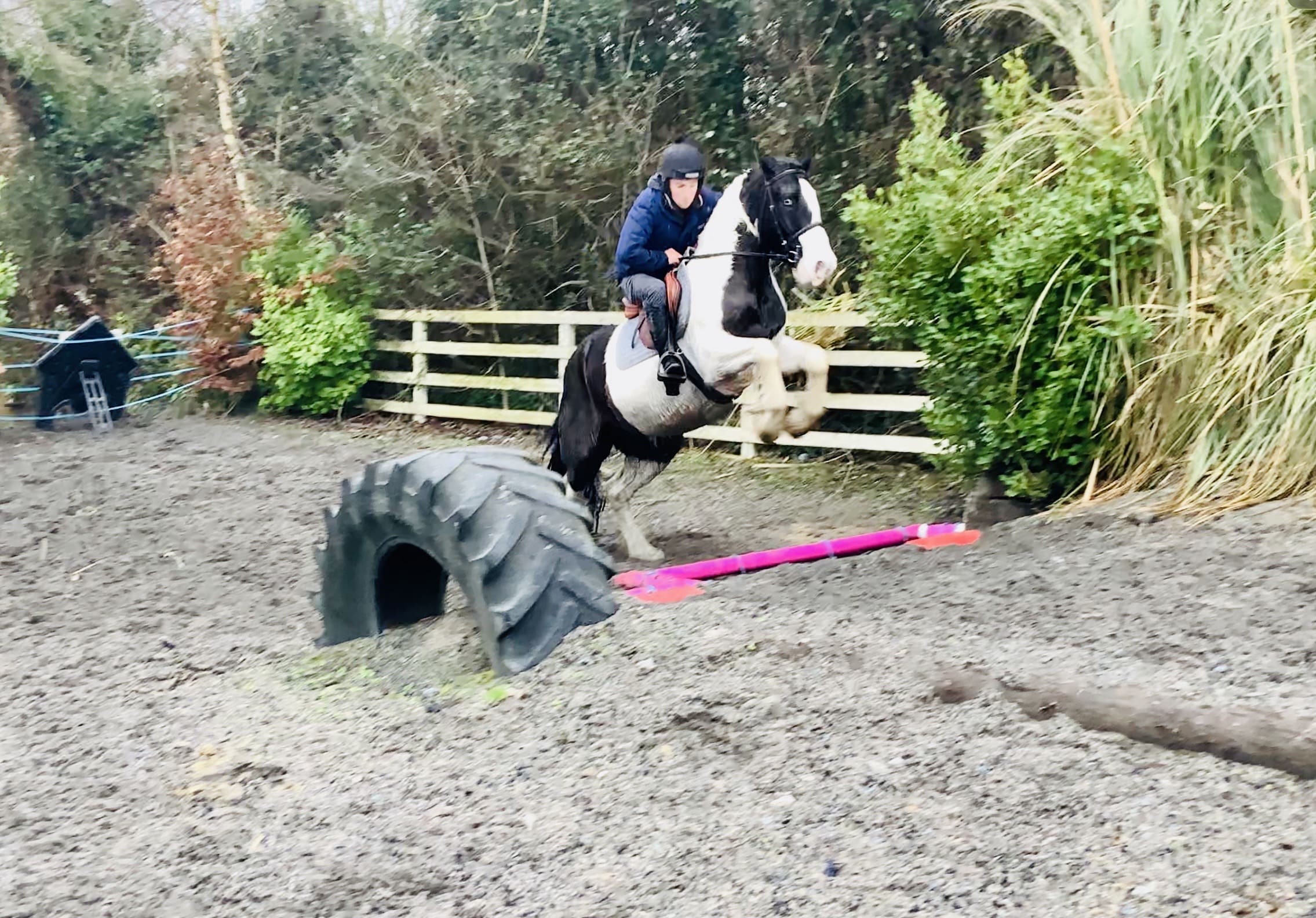Harvey is a truly special horse who ticks every box. He is a 4-year-old beautifully marked piebald cob gelding, standing at 15hh at present with plenty of growing left to do. He is a proper leg-in-each-corner type with excellent bone, strong limbs and beautiful feathers β a real head-turner wherever he goes.